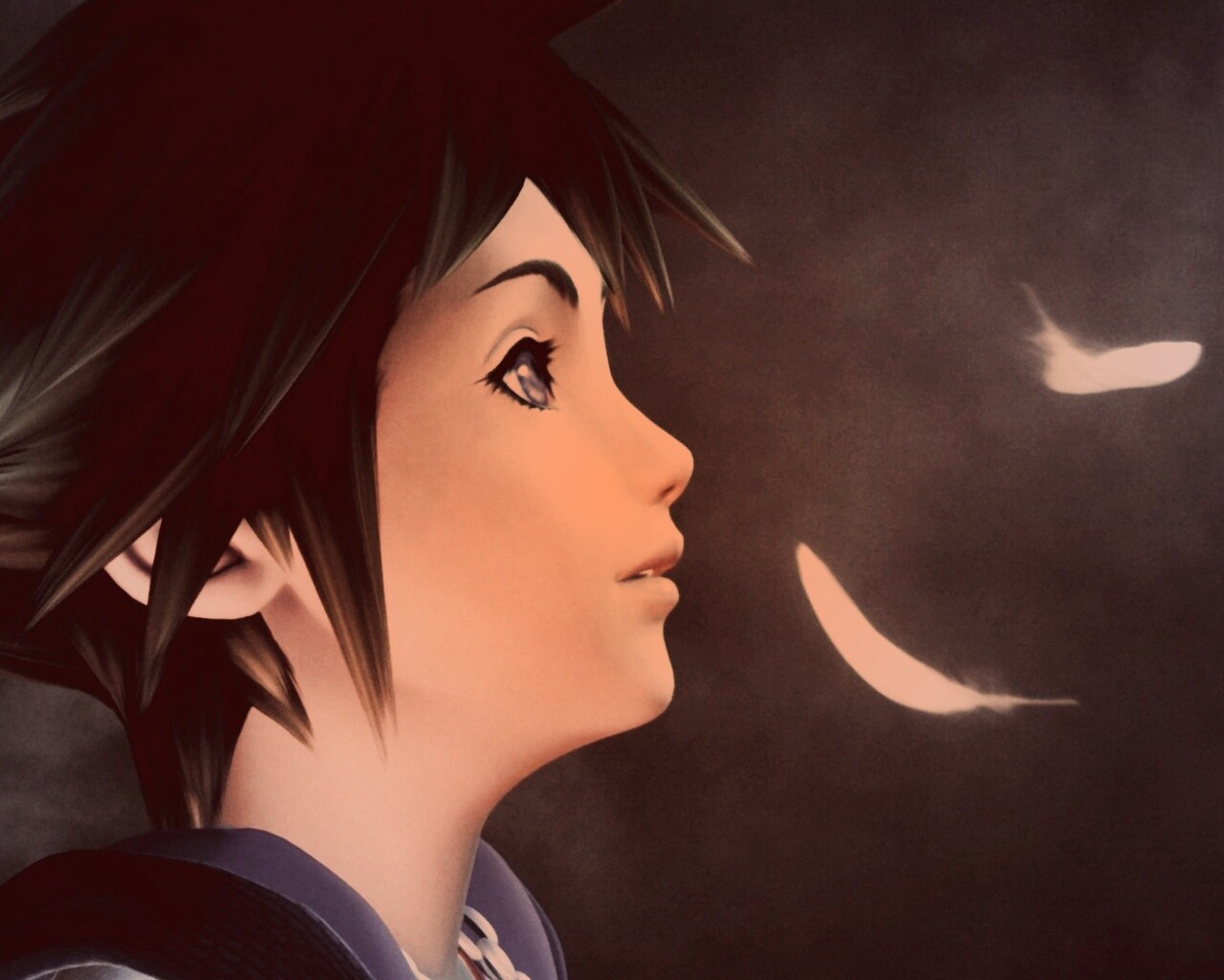 «Анимешный парень и белые перья»