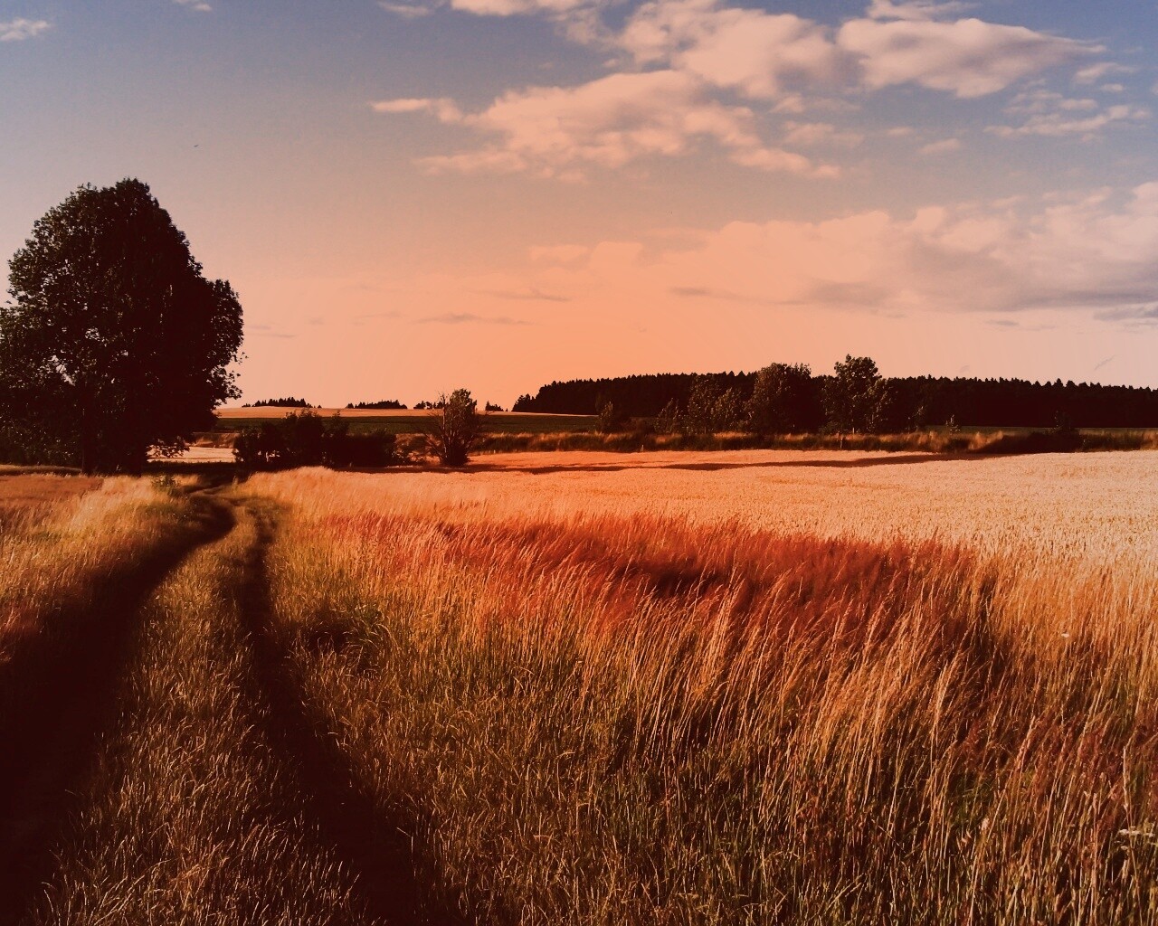 Обои для рабочего стола «Колея в поле» 1280х1024 с фильтром toaster (оригинал 3072х1922)