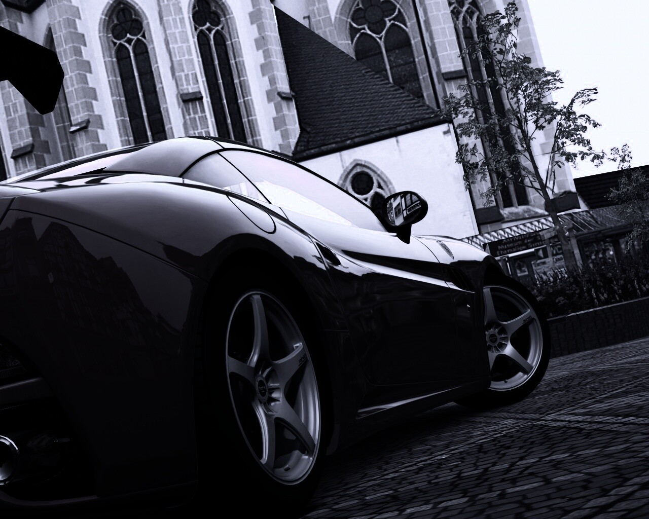 Обои для рабочего стола «Ferrari на мостовой» 1280х1024 с фильтром gotham (оригинал 3840х2160)