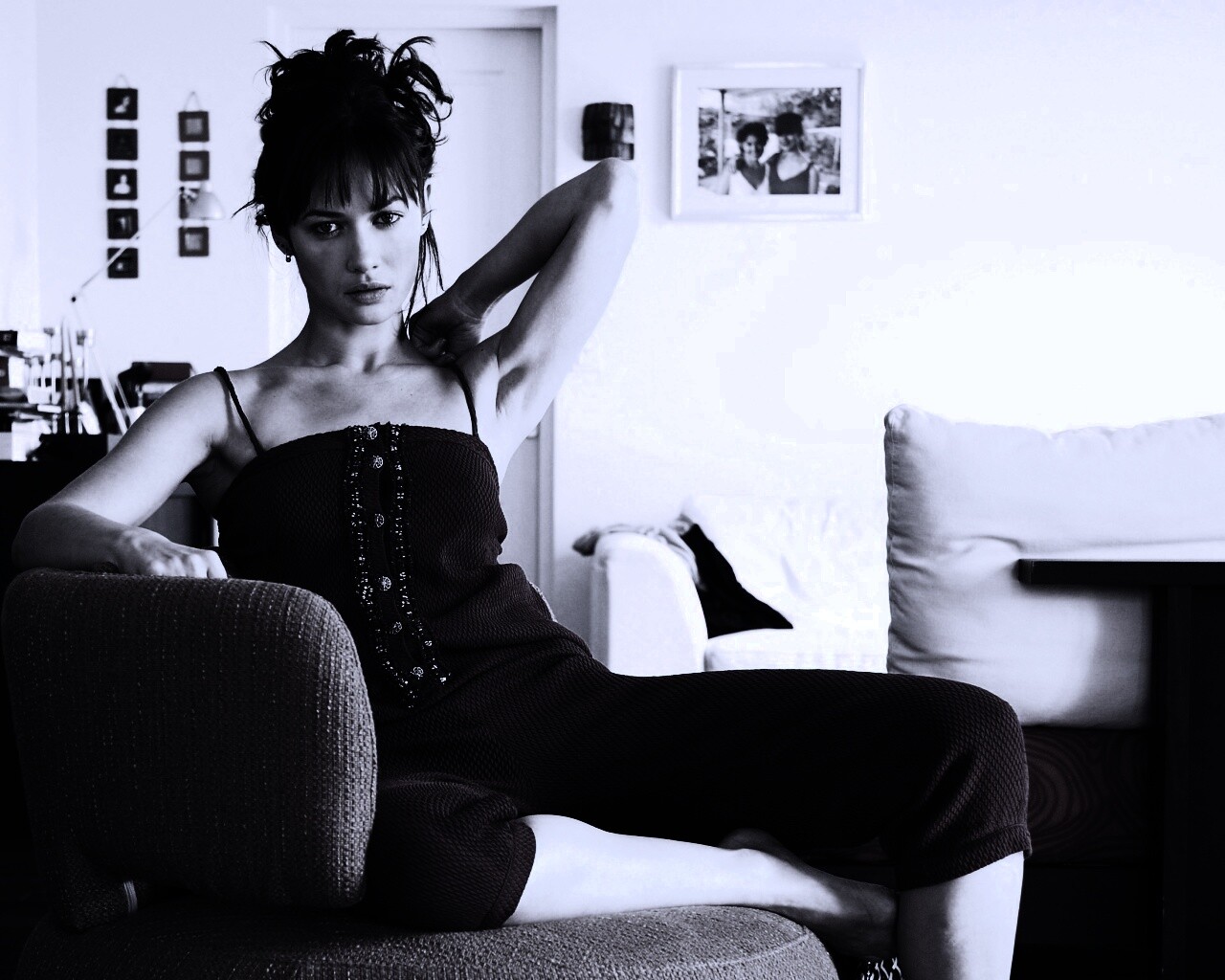 Обои для рабочего стола «Ольга Куриленко на кресле» 1280х1024 с фильтром gotham (оригинал 3720х2480)