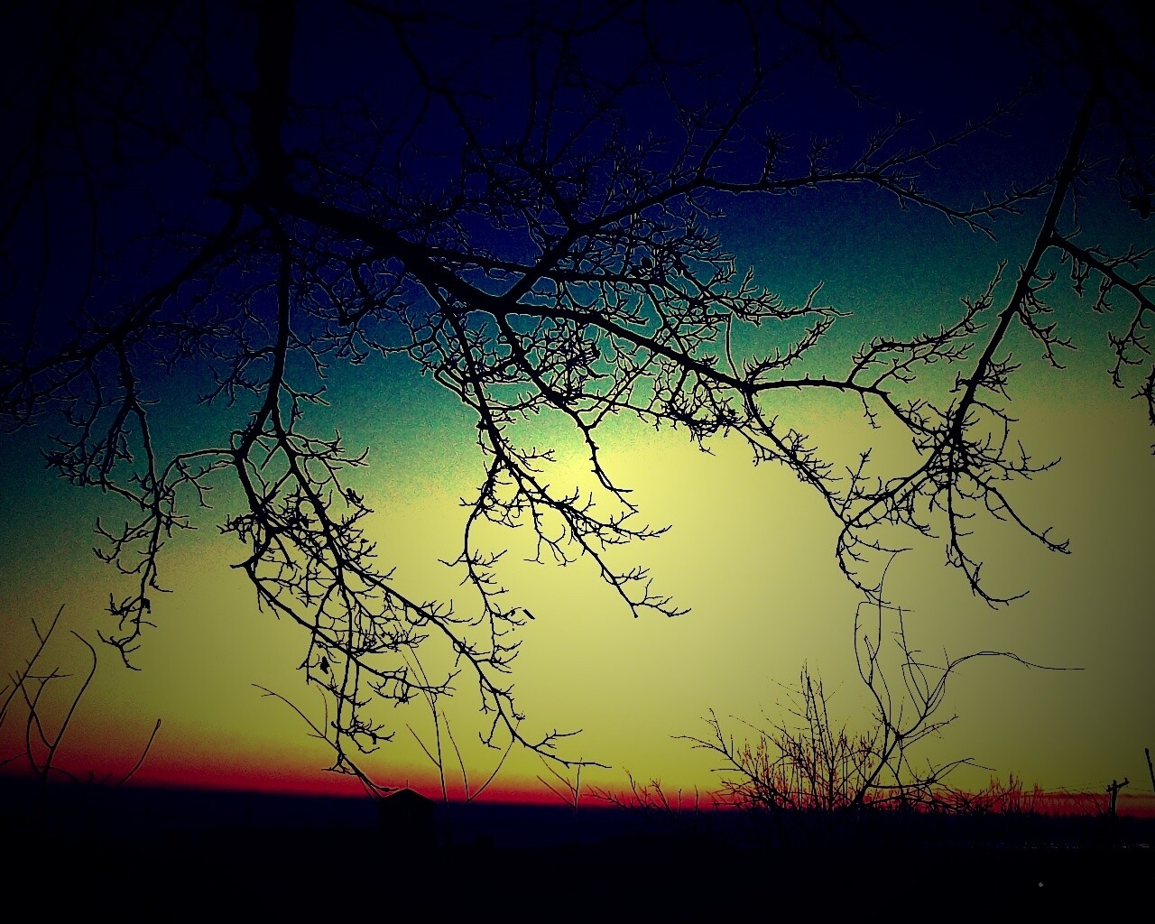 «Закат сквозь ветки деревьев»
