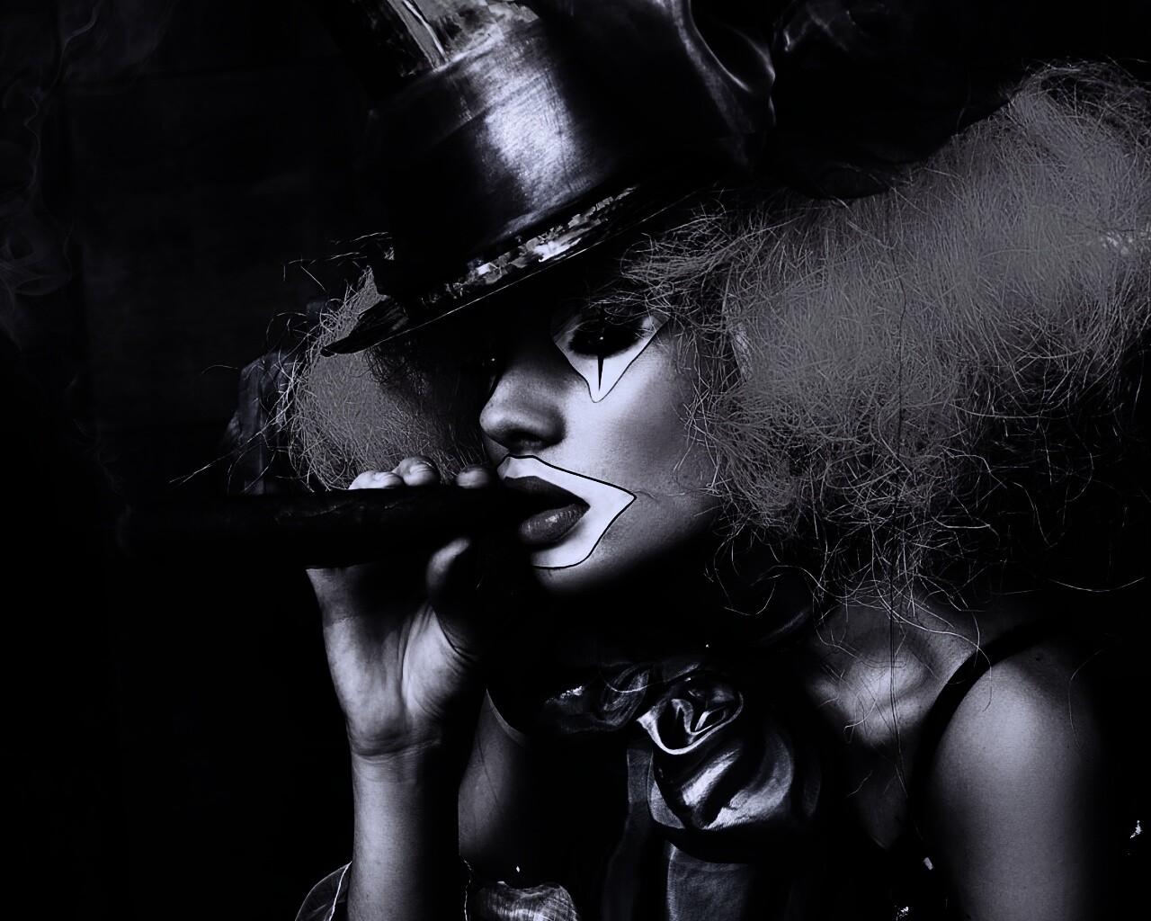 «Девушка клоун курит сигару»