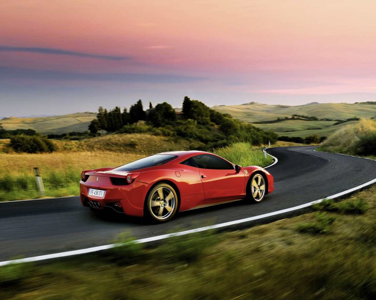 «Красная феррари на извилистой дороге»