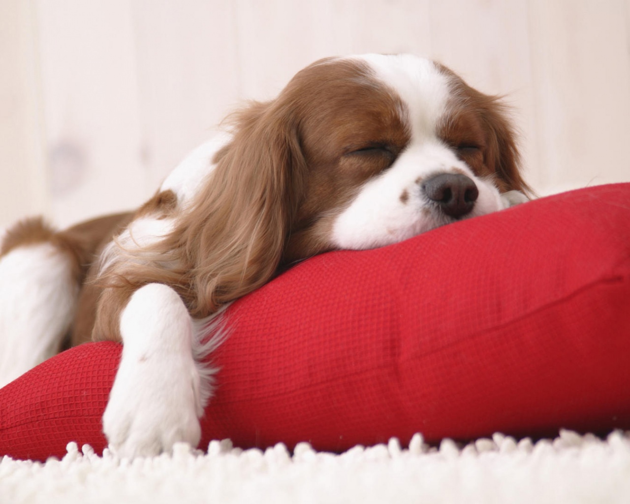 «Спящий щенок на красной подушке»