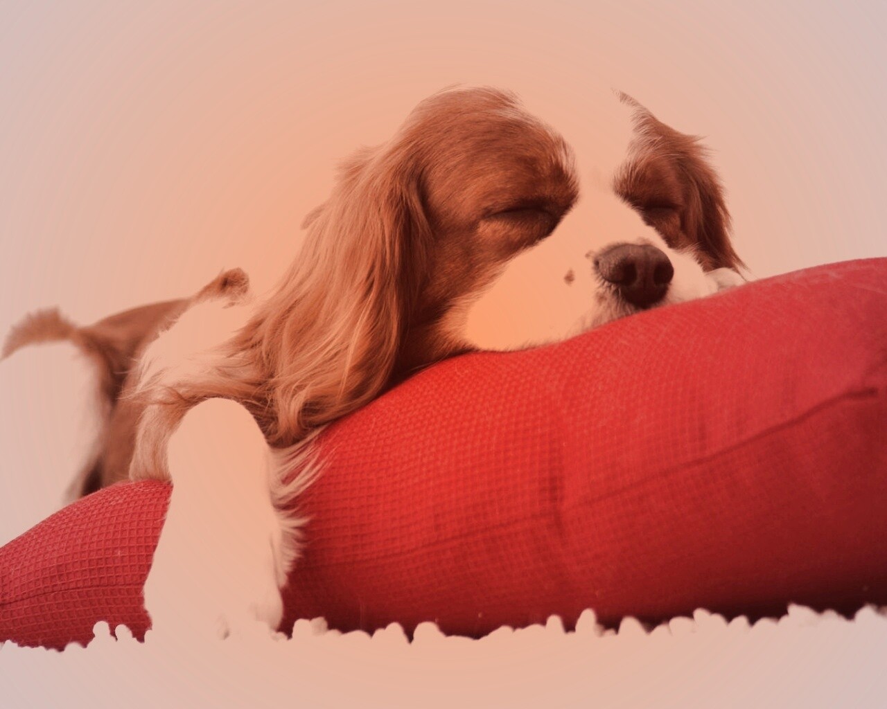«Спящий щенок на красной подушке»