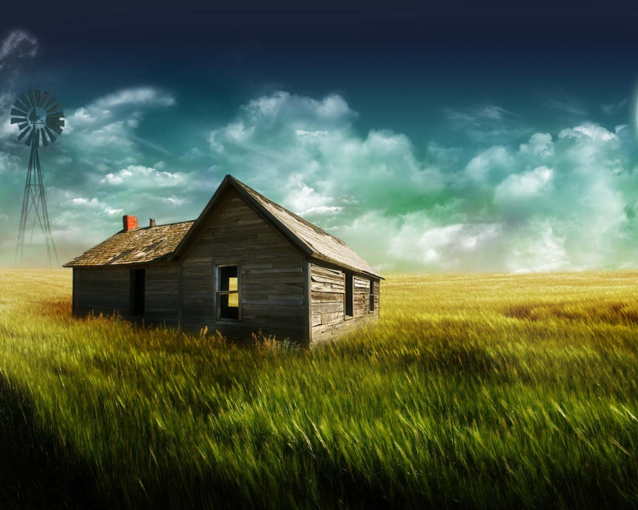 Обои для рабочего стола «Домик в поле» 1280х1024 (оригинал 1920х1200)