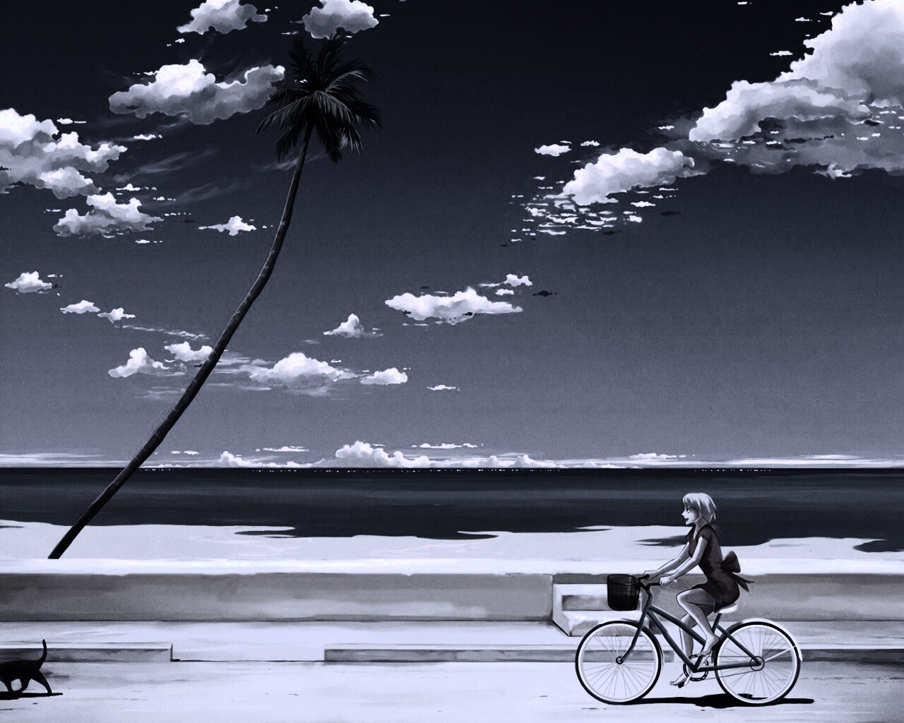 «Девушка едет на велосипеде вдоль берега»