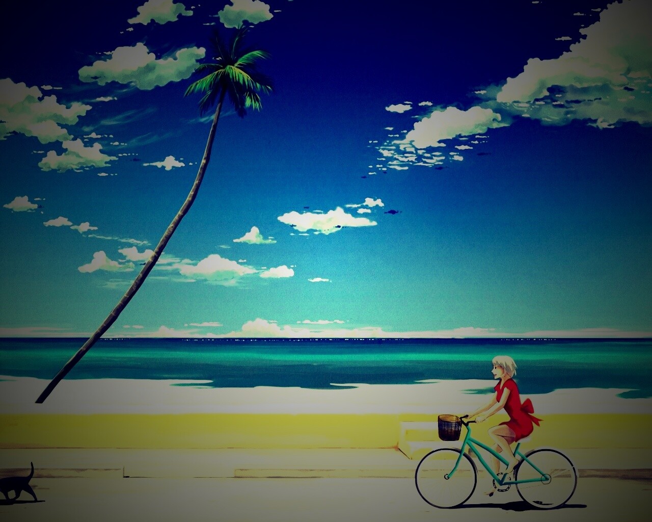 «Девушка едет на велосипеде вдоль берега»