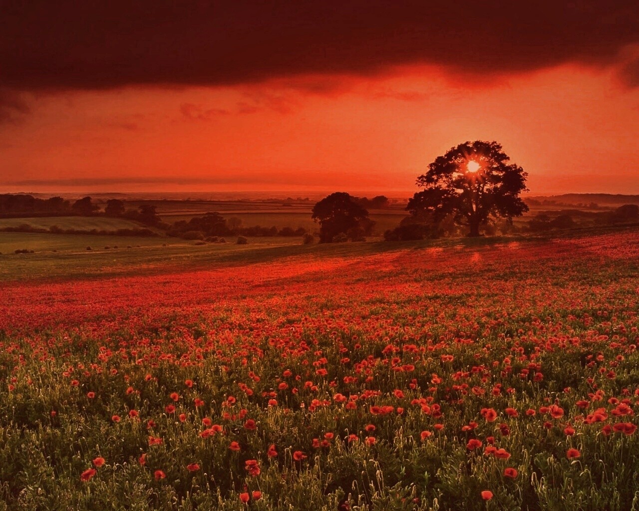«Закат на поле красных цветов»