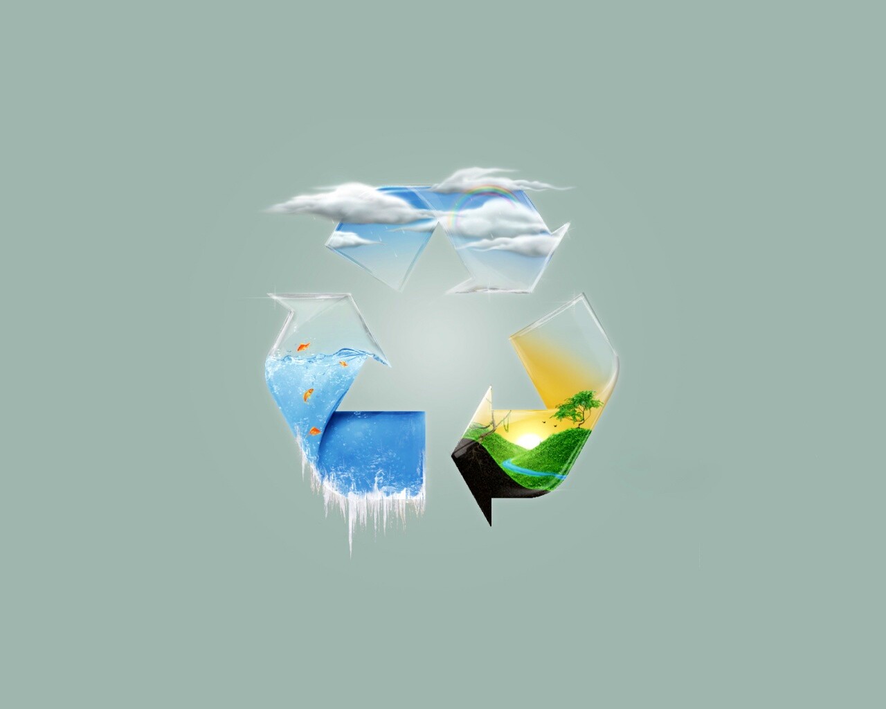 Обои для рабочего стола «Круговорот воды в природе в значке переработки» 1280х1024 с фильтром vibrance (оригинал 1680х1200)