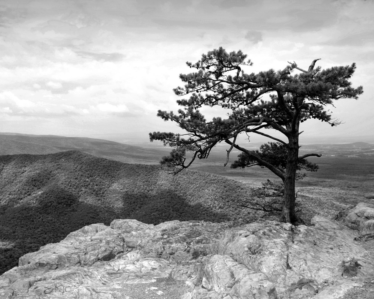 «Горное дерево в черно-белых тонах»