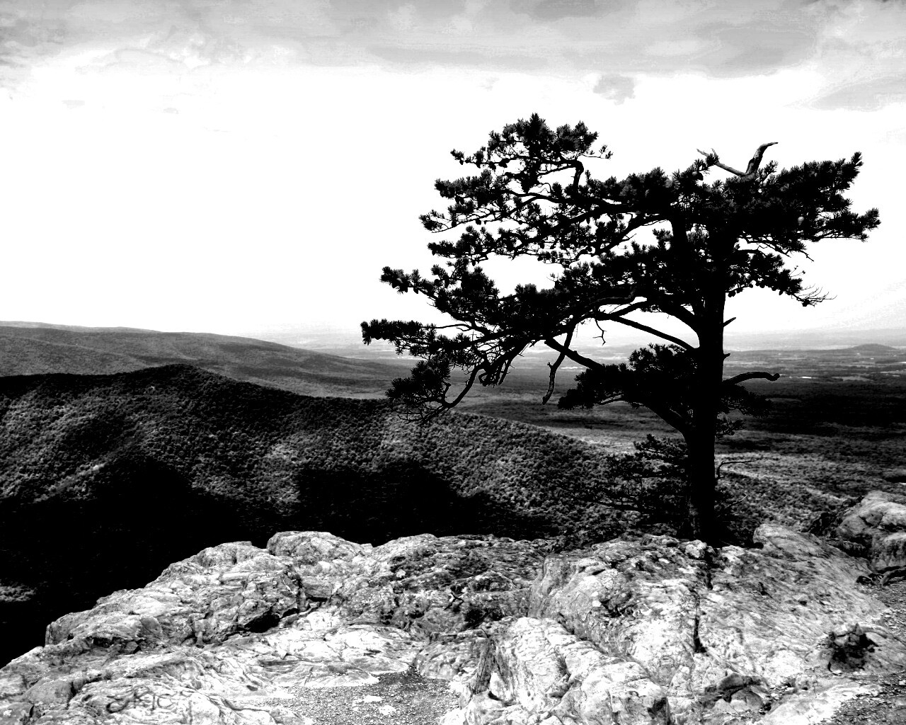 «Горное дерево в черно-белых тонах»