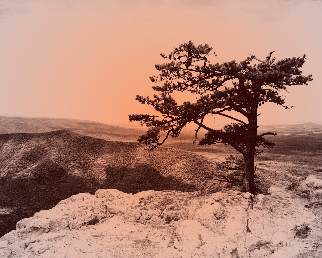 «Горное дерево в черно-белых тонах»