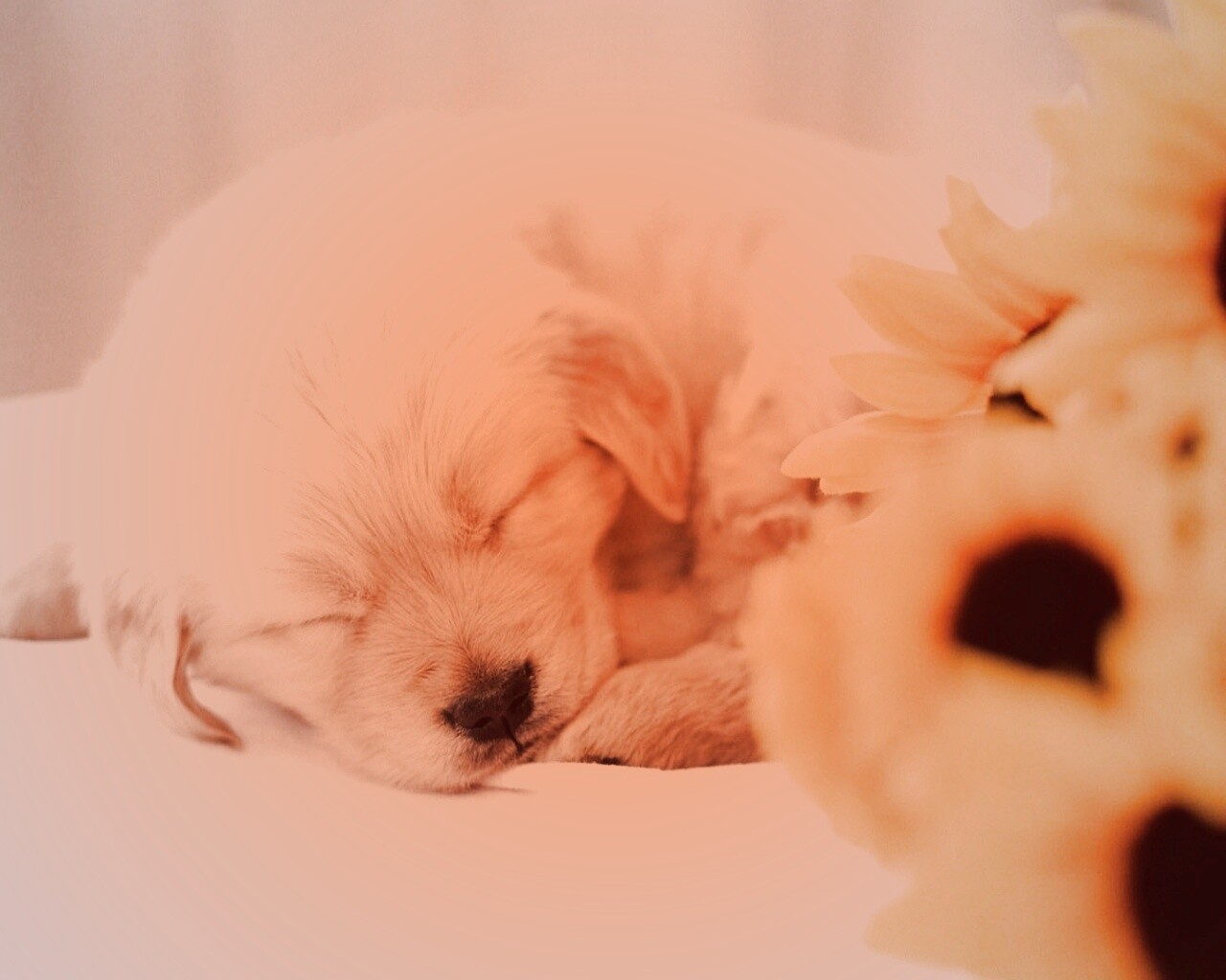 Обои для рабочего стола «Спящий щенок» 1280х1024 с фильтром toaster (оригинал 1920х1080)