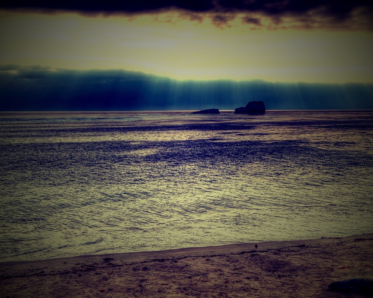 «Пляж на фоне светящегосы неба»