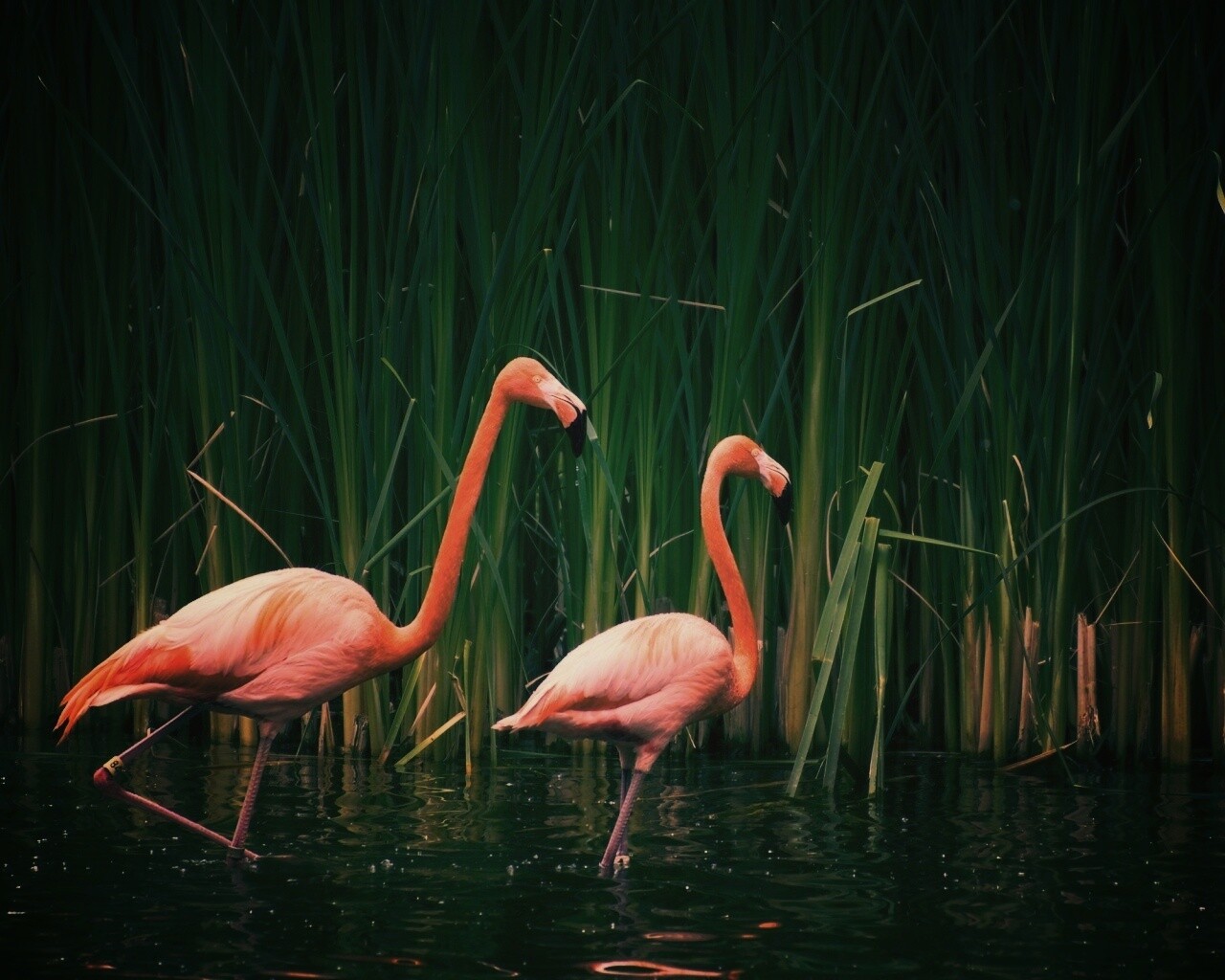 «Красивые розовые фламинго на озере»