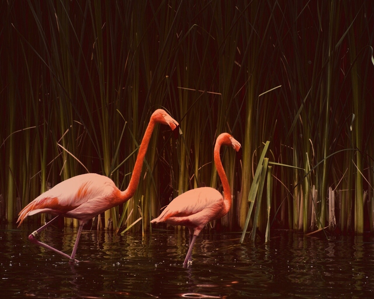 «Красивые розовые фламинго на озере»