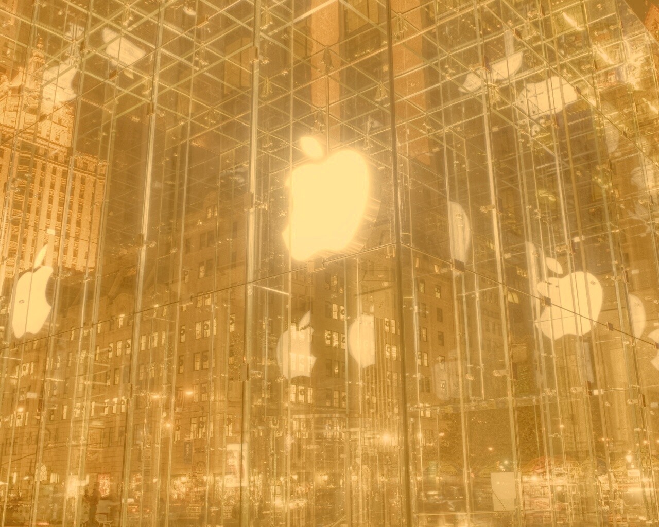 «Отражение логотипа Apple в стеклянном здании»