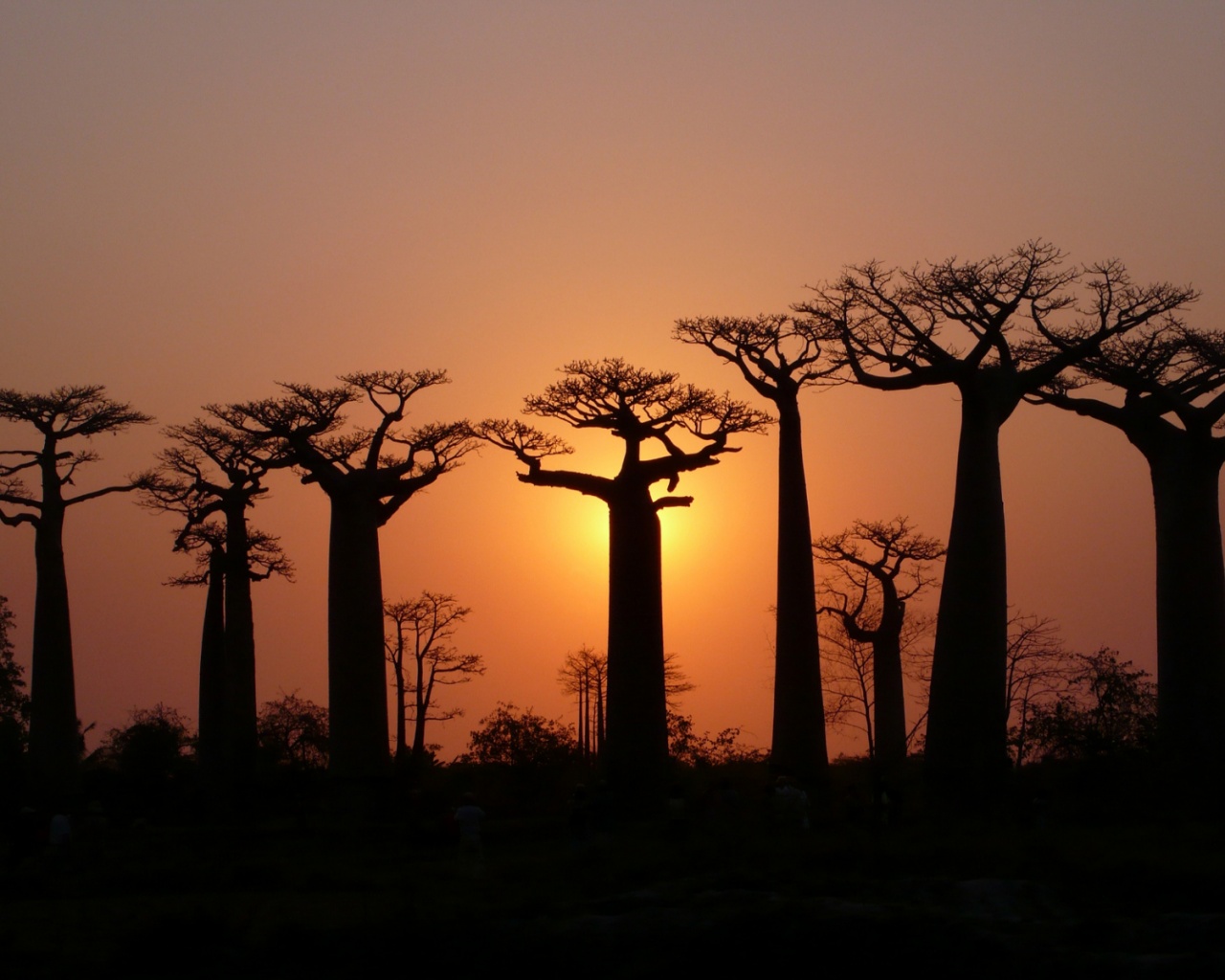 Обои для рабочего стола «Баобабы на закате» 1280х1024 (оригинал 1920х1200)