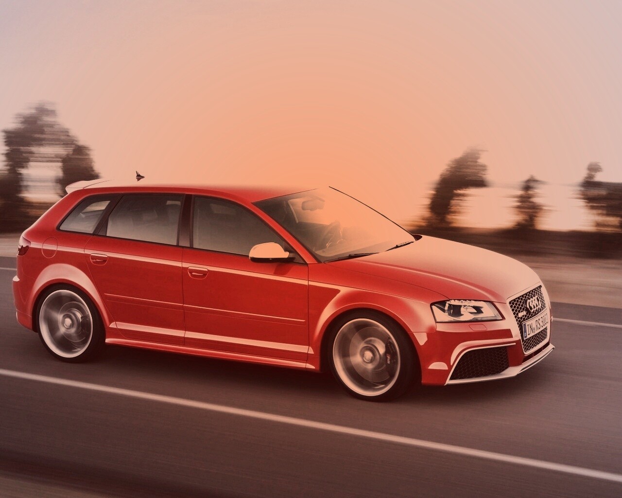 «Красная Audi модели RS3 на дороге»