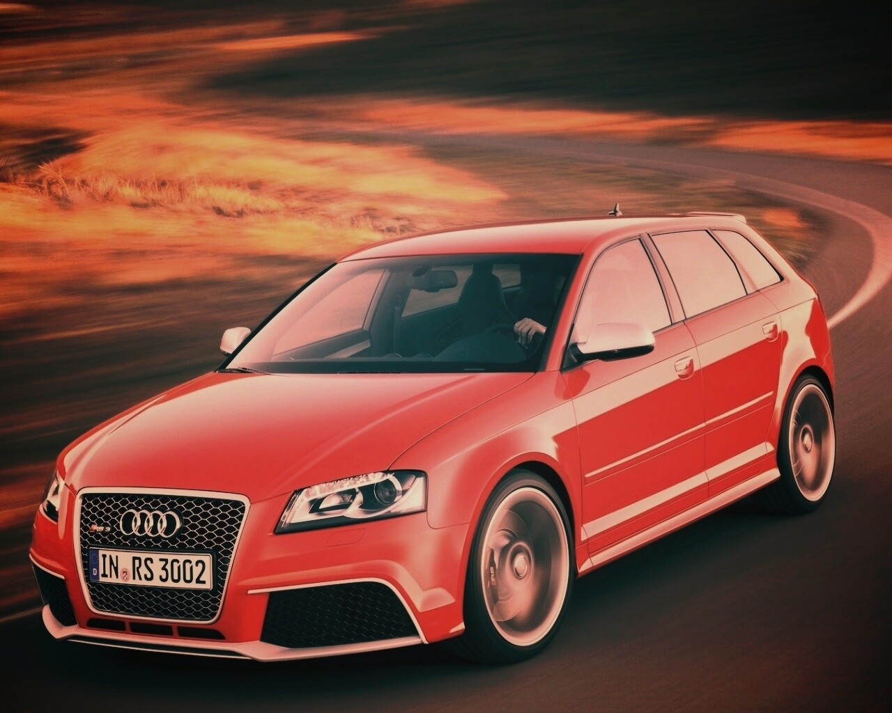 «Красная ауди мчится по извилистой дороге»