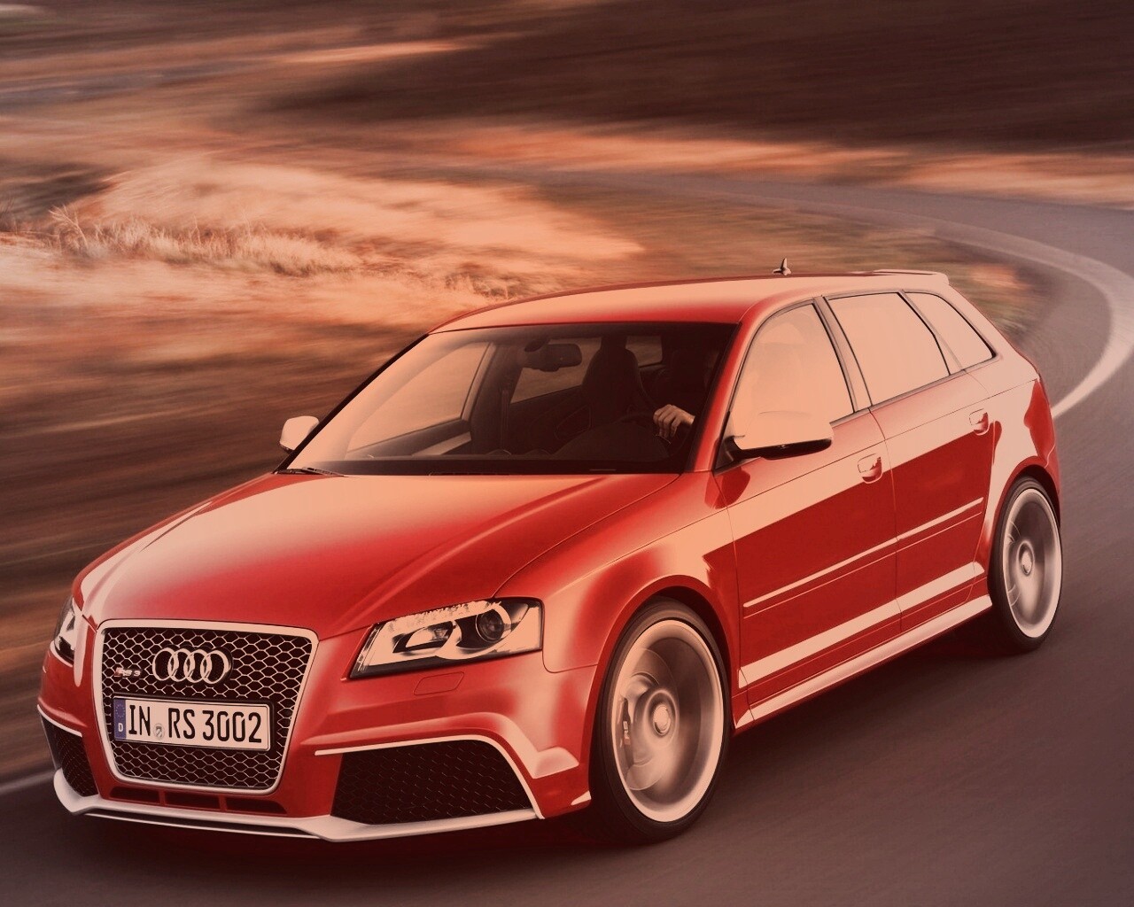 «Красная ауди мчится по извилистой дороге»