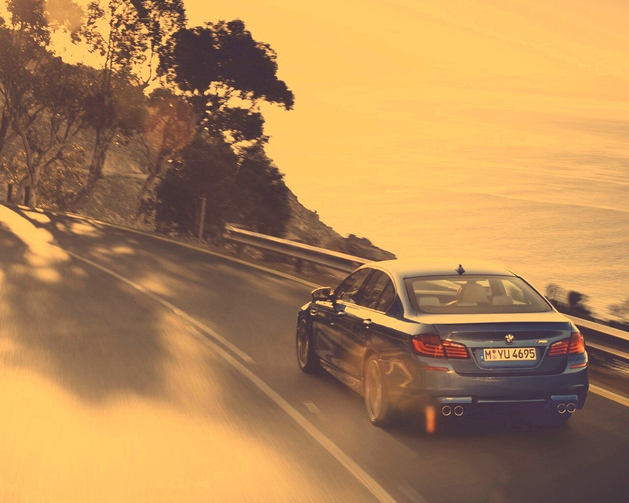 Обои для рабочего стола «BMW F10 на горной дороге » 1280х1024 с фильтром nashville (оригинал 1920х1200)