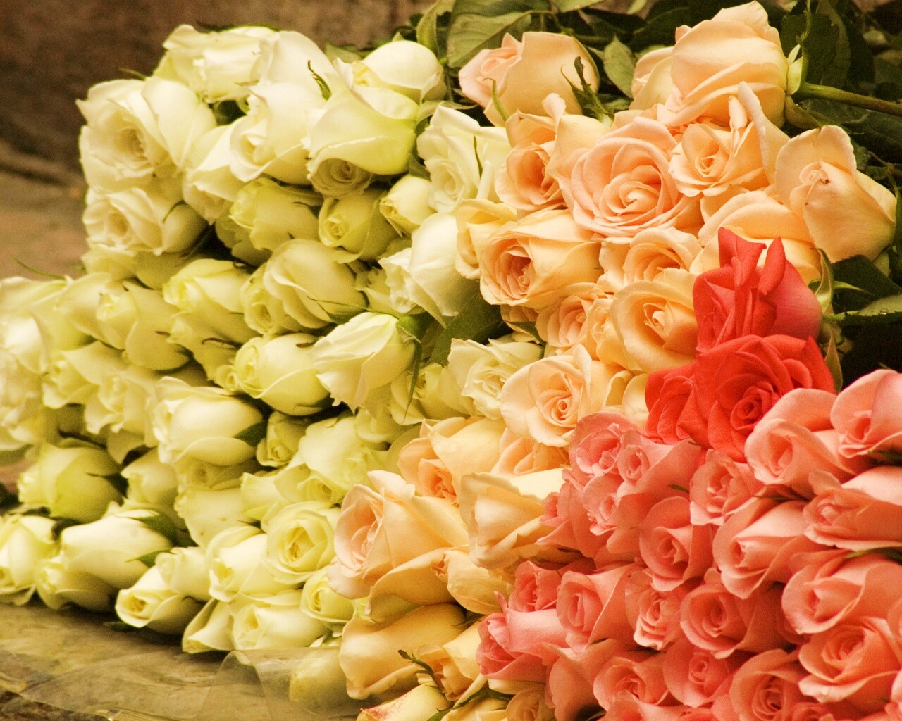 Обои для рабочего стола «Букеты светлых роз» 1280х1024 с фильтром vibrance (оригинал 2560х1600)