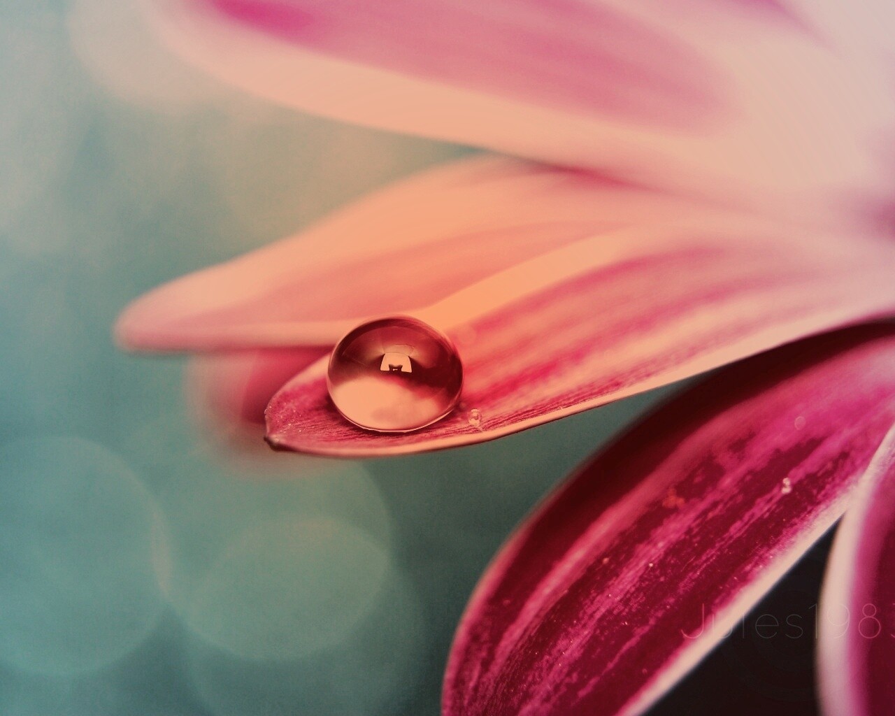 Обои для рабочего стола «Капля на лепестке» 1280х1024 с фильтром toaster (оригинал 2560х1600)