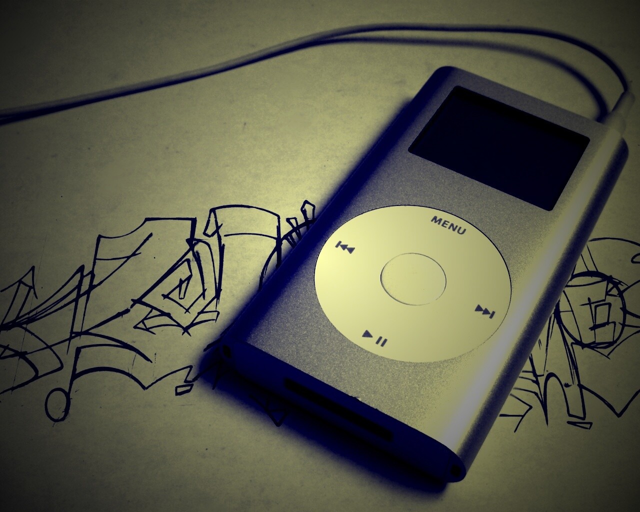 «iPod на лиске с граффити»