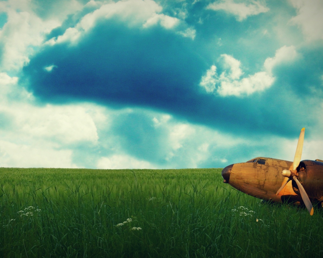 «Старый ржавый самолет на лугу»