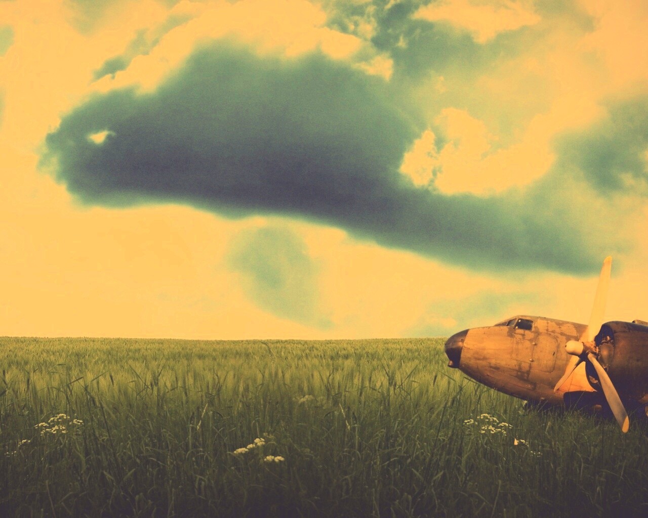 «Старый ржавый самолет на лугу»
