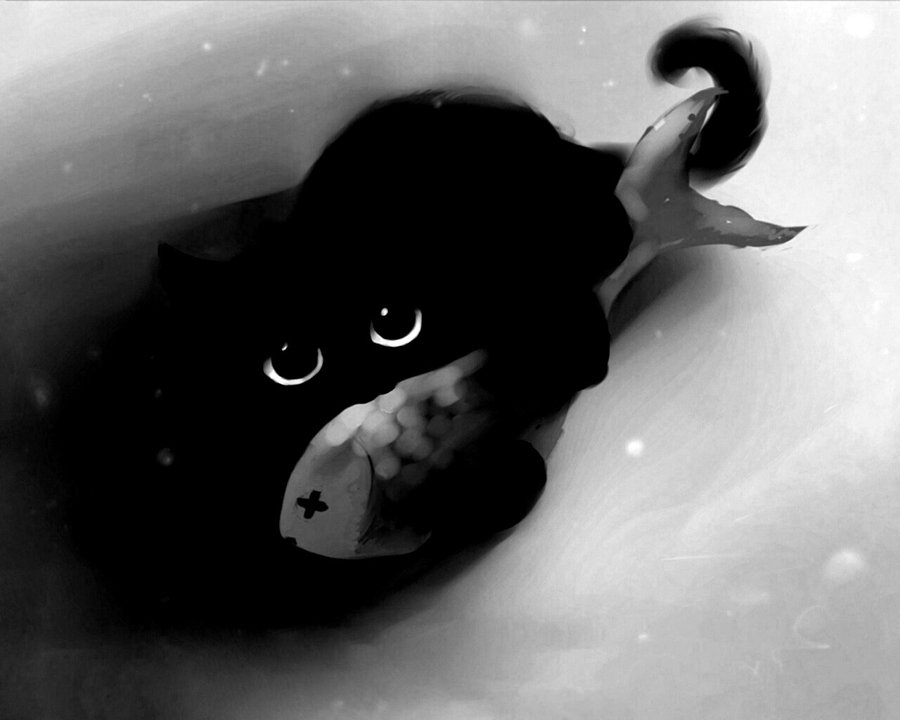 Обои для рабочего стола «Кот с рыбкой» 1280х1024 с фильтром inkwell (оригинал 1920х1200)