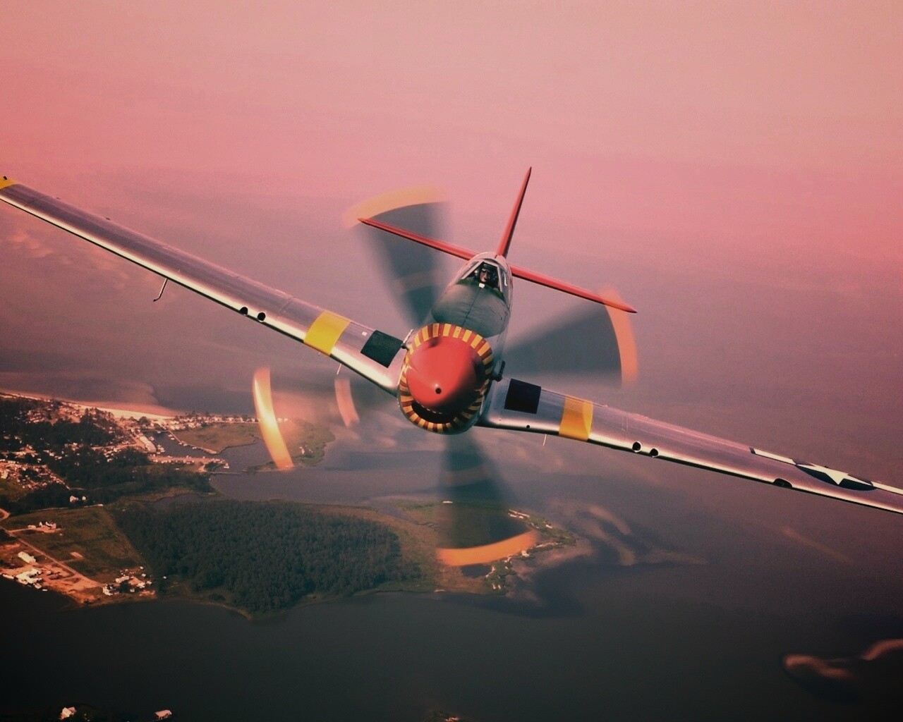 Обои для рабочего стола «Пропеллерный самолёт» 1280х1024 с фильтром earlybird (оригинал 1920х1200)