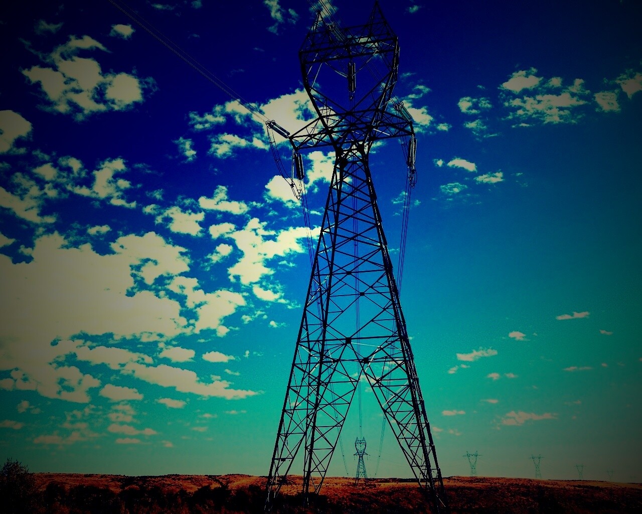 Обои для рабочего стола «Линии электро передач» 1280х1024 с фильтром lomo (оригинал 2560х1600)