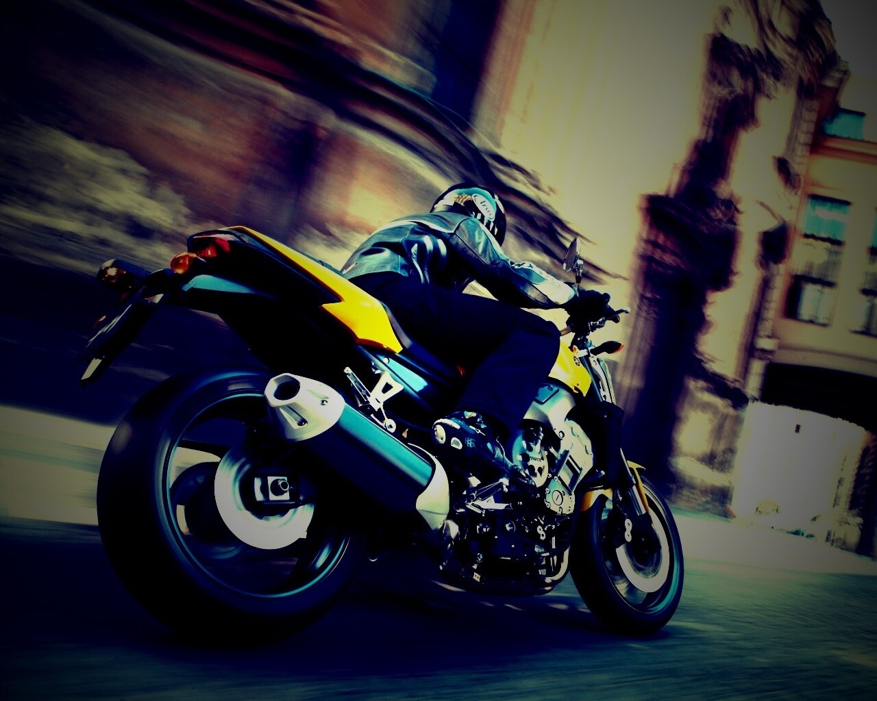 «Ямаха и наездник на улицах города»