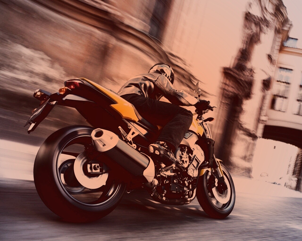 «Ямаха и наездник на улицах города»
