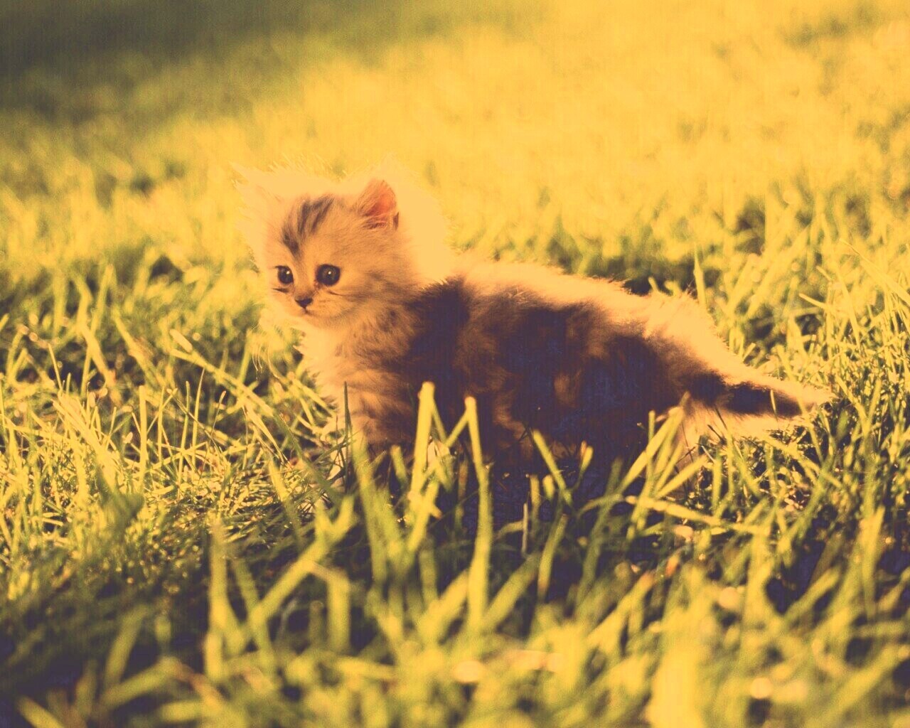 Обои для рабочего стола «Котёнок в траве» 1280х1024 с фильтром nashville (оригинал 1920х1200)