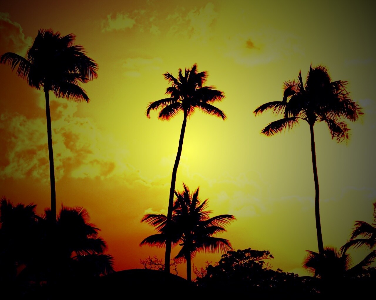 Обои для рабочего стола «Пальмы на закате» 1280х1024 с фильтром lomo (оригинал 1920х1200)