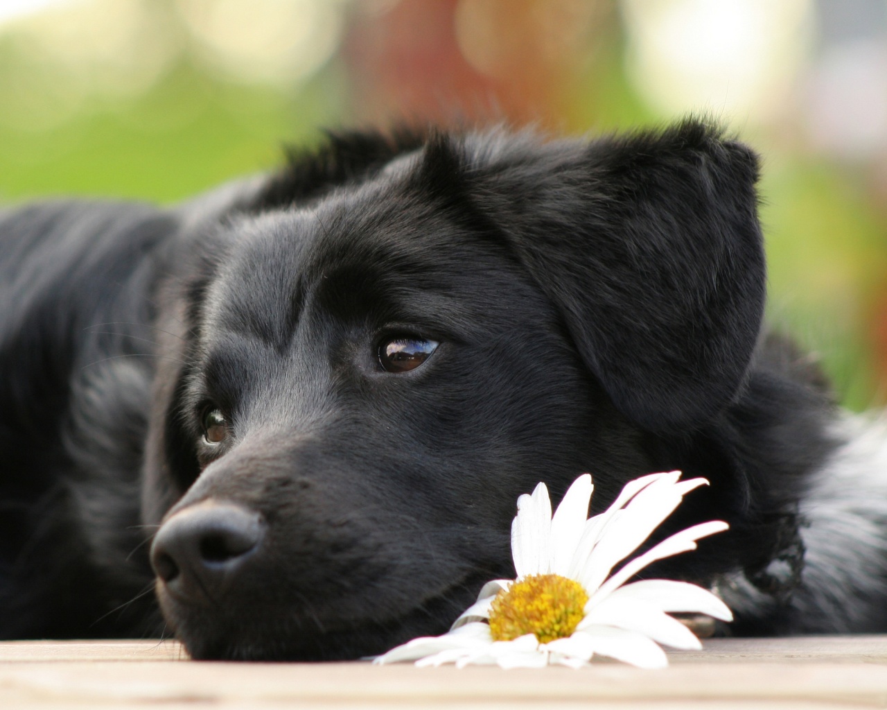 Обои для рабочего стола «Собака с ромашкой» 1280х1024 (оригинал 2560х1600)
