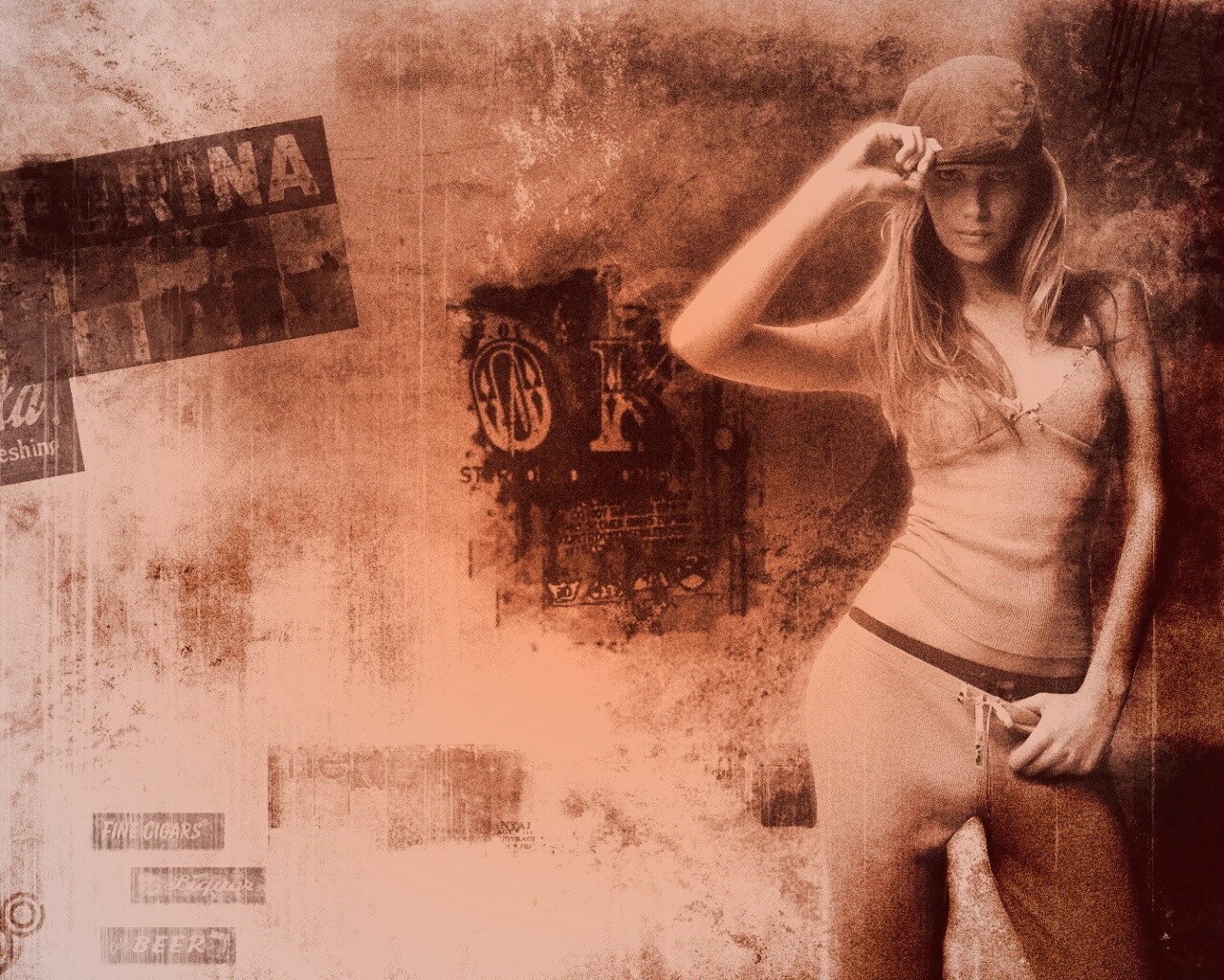 Обои для рабочего стола «Винтажная девушка» 1280х1024 с фильтром toaster (оригинал 1920х1080)