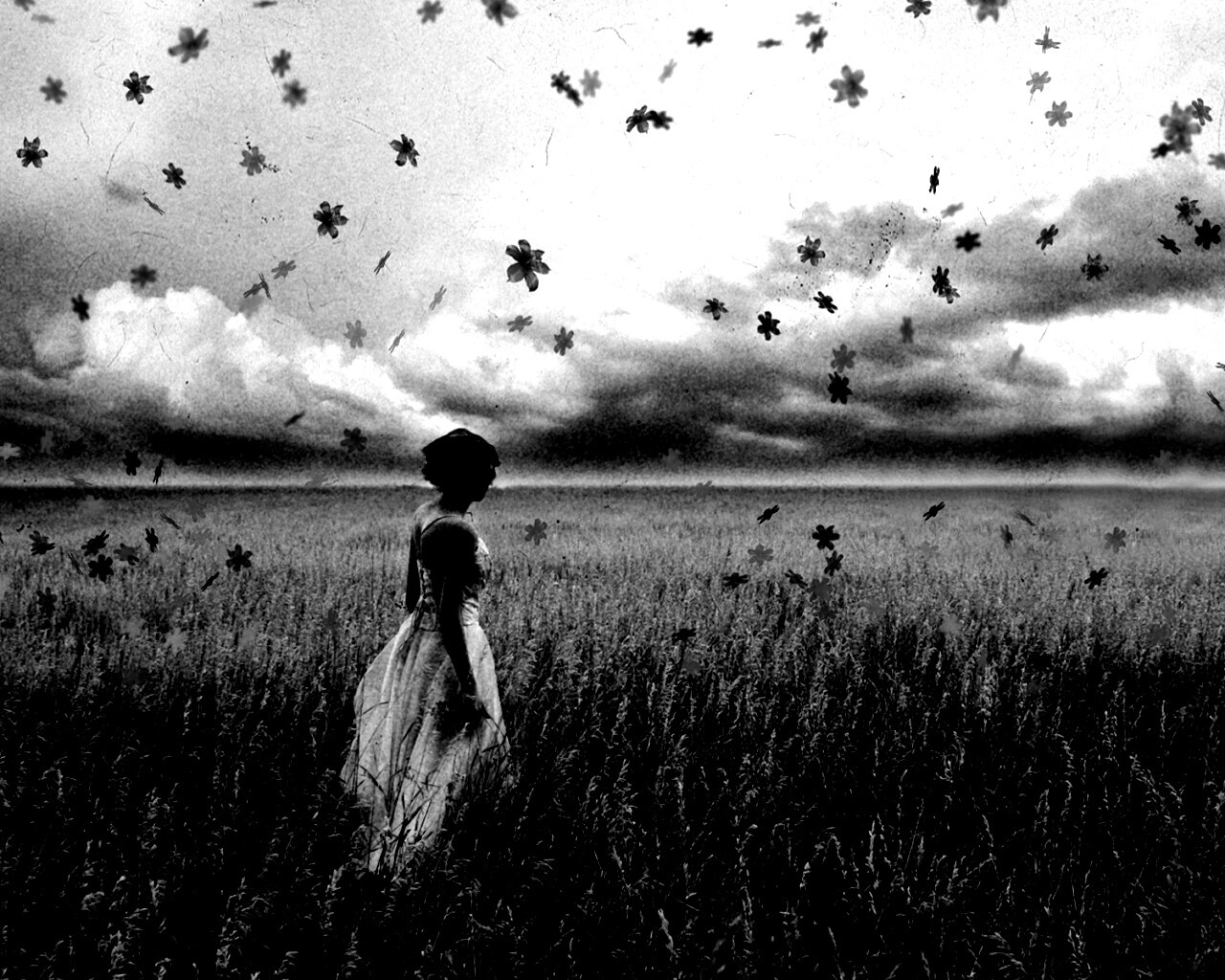 «Грустная девушка в поле травы»