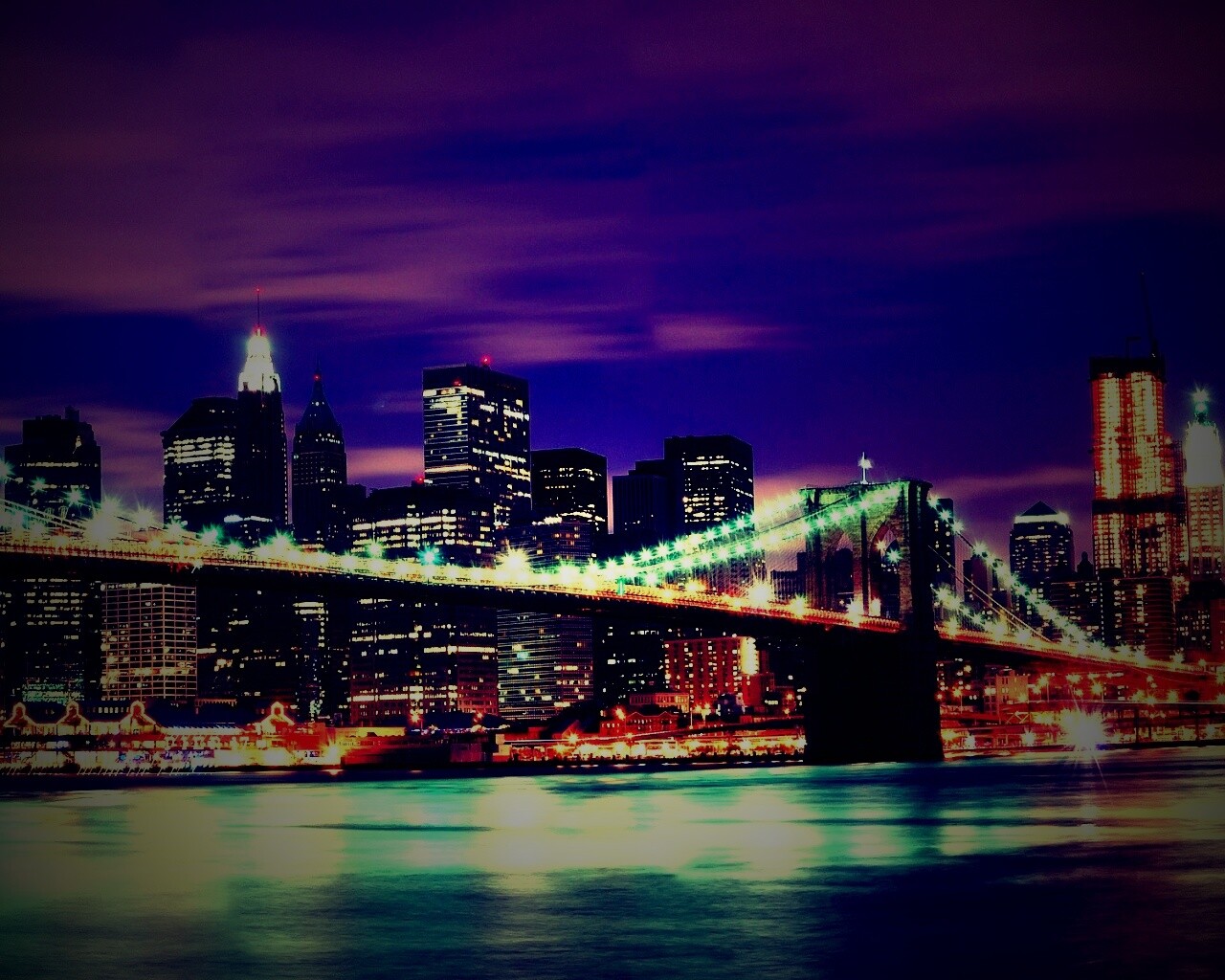 «Бруклинский мост на фоне ночного Нью-Йорка»
