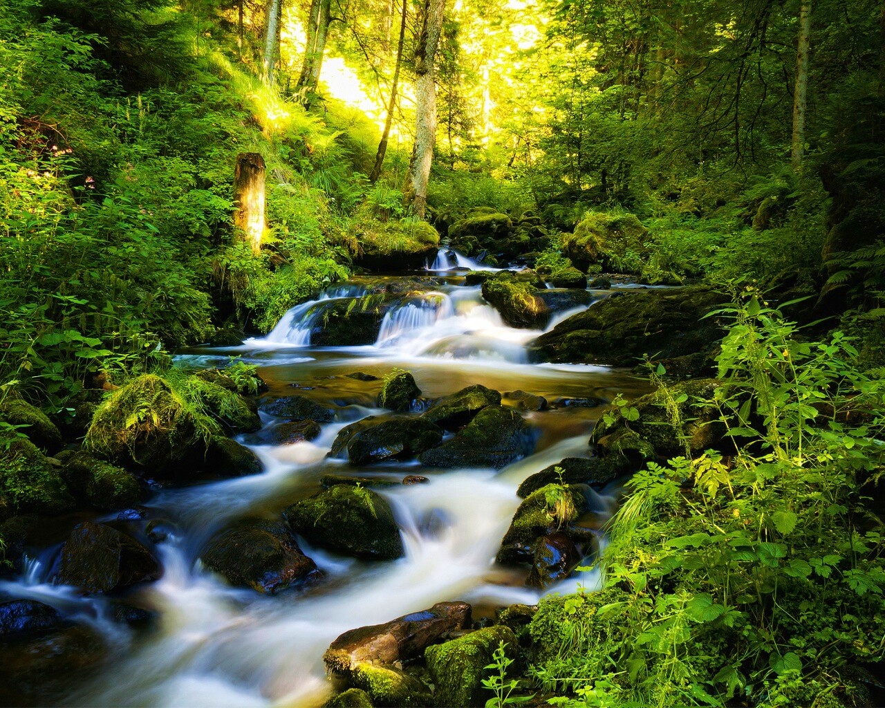Обои для рабочего стола «Живописный лесной водопад» 1280х1024 с фильтром vibrance (оригинал 2560х1600)