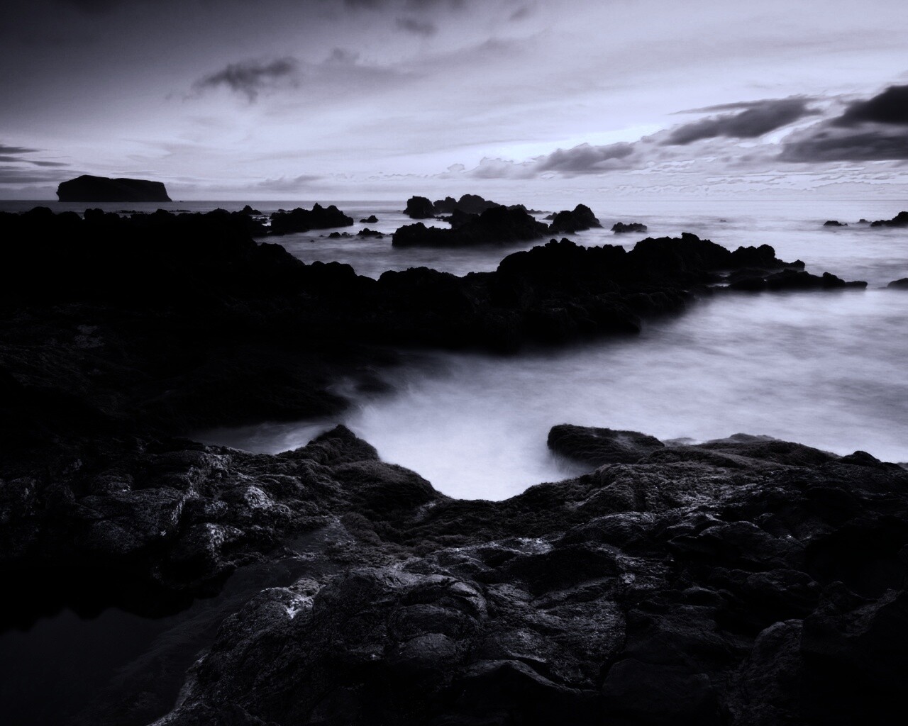 Обои для рабочего стола «Острова в тумане» 1280х1024 с фильтром gotham (оригинал 1920х1200)