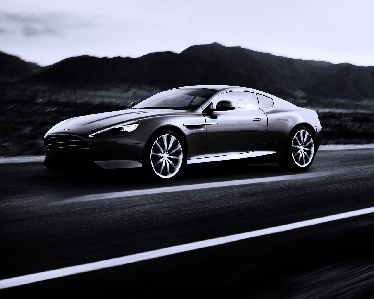 Обои для рабочего стола «Астон Мартин на шоссе» 1280х1024 с фильтром gotham (оригинал 2560х1600)