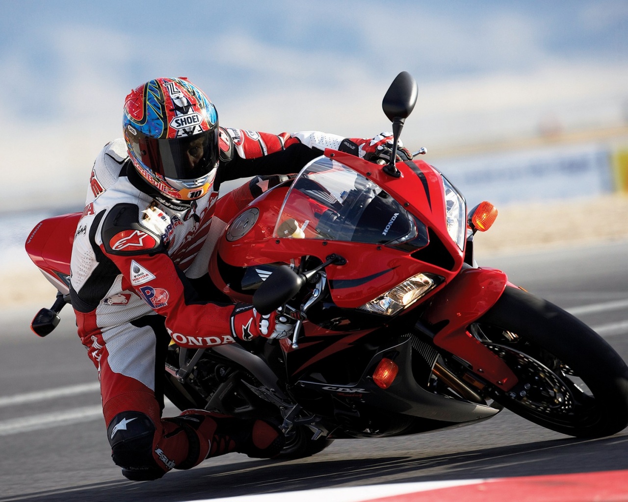 Обои для рабочего стола «Мотоциклист на Хонде» 1280х1024 (оригинал 1920х1200)
