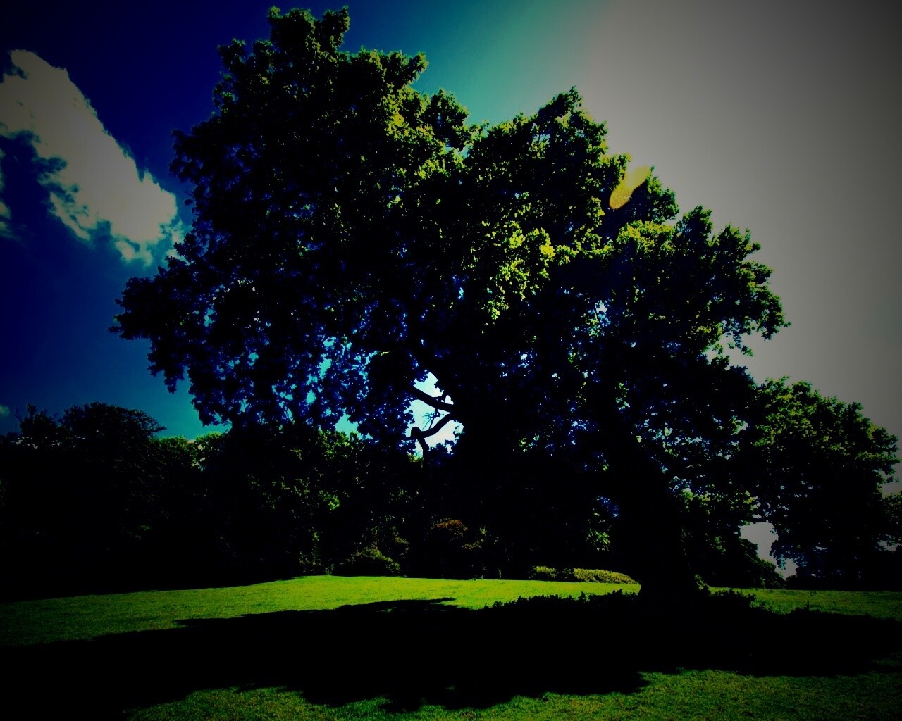 «Большое зеленое дерево на лужайке»