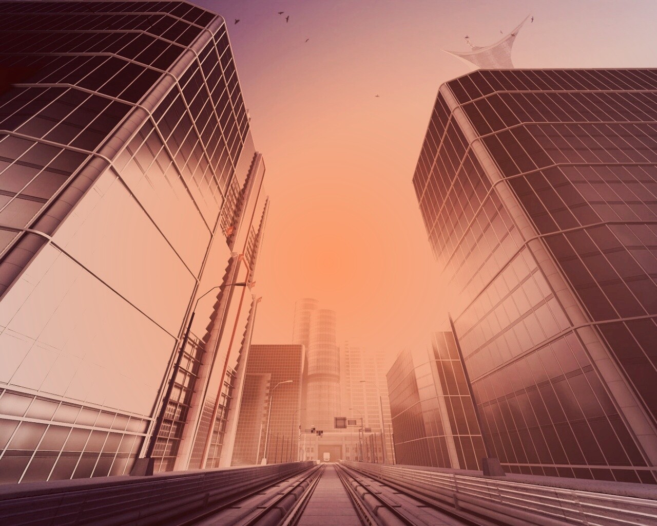 Обои для рабочего стола «Улица из Mirrors Edge» 1280х1024 с фильтром toaster (оригинал 1920х1080)