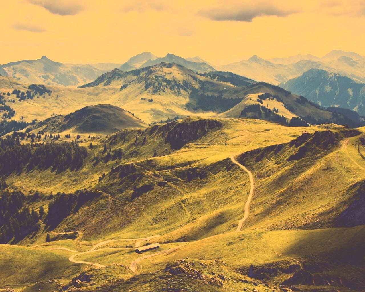 Обои для рабочего стола «Извилистая горная дорога» 1280х1024 с фильтром nashville (оригинал 1920х1080)
